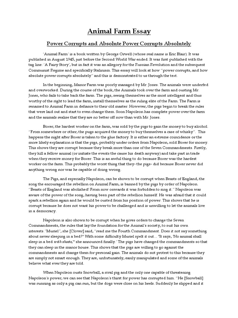 Absolute power corrupts absolutely, Napoleon and his fellow pigs got animal farm essay when they took control the farm, animal farm essay. In maintaining their supremacy within the farm, they had to change some rules to avoid being accused of breaking the law.